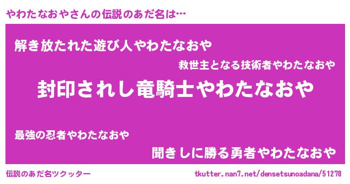 | 胡散臭い通販商品みたいなあだ名 | 『億万長者になれるブレスレット…その名も「やわたなおや」』 |