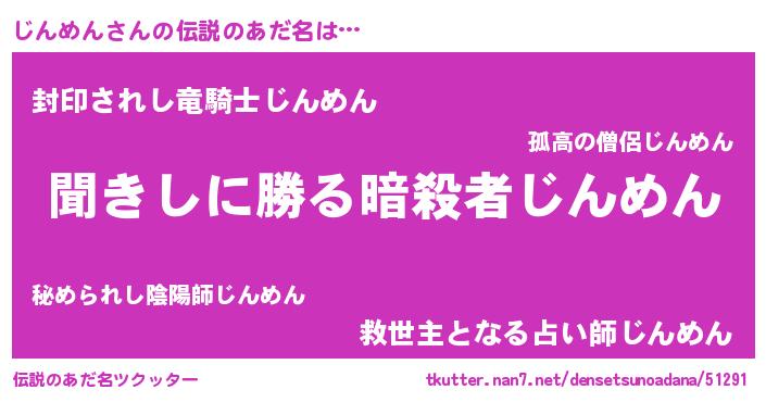 | 意味不明あだ名 | 『自称じんめん』『永久保存じんめん』 |
