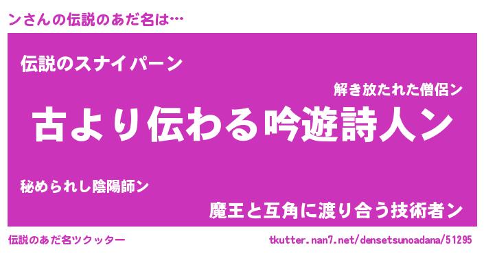 | 意味不明あだ名 | 『自称ン』『住所不定無職ン(79歳)』 |