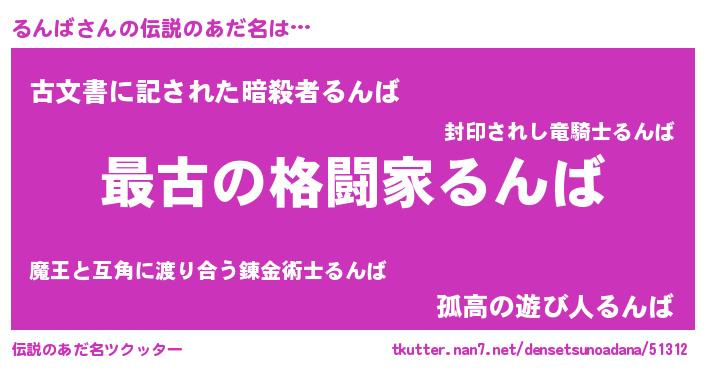 | 意味不明あだ名 | 『るんばフォーエバー』『永久保存るんば』 |