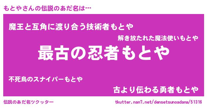 | ポケモン風あだ名 | 『モトヤダネ』『モックウザ』 |