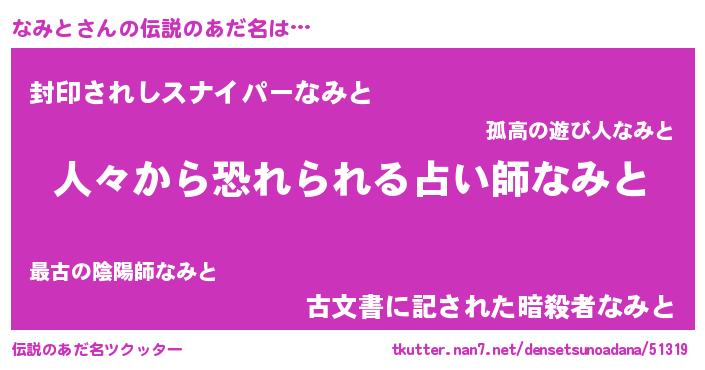 | 意味不明あだ名 | 『自称なみと』『眠気覚ましガムなみと味』 |
