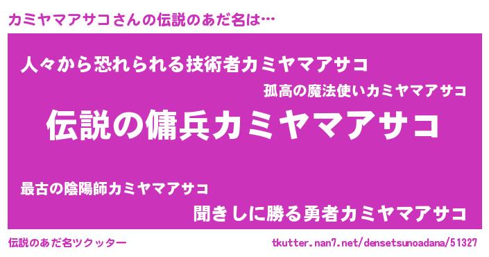 | 意味不明あだ名 | 『自称カミヤマアサコ』 |