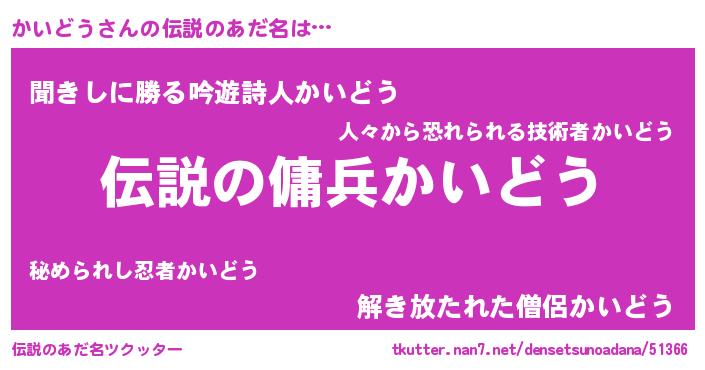 | 胡散臭い通販商品みたいなあだ名 | 『必ず成功する水晶球…その名も「かいどう」』 |