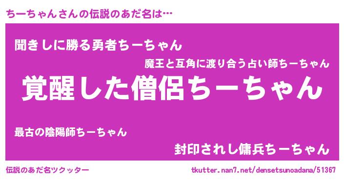 | ヒーロー風カッコイイあだ名 | 『天弓騎士チー』『ネオチーチャン』 |
