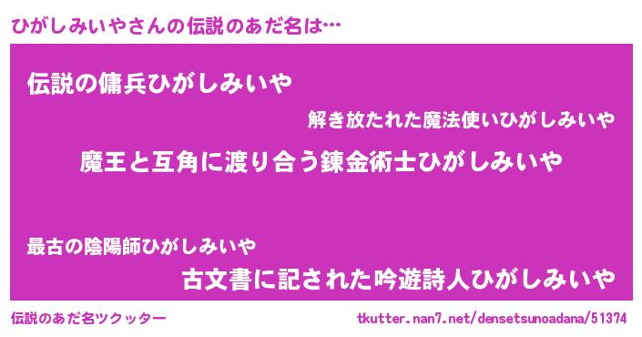 | ヒーロー風カッコイイあだ名 | 『友情の使者ひがしみいや』 |
