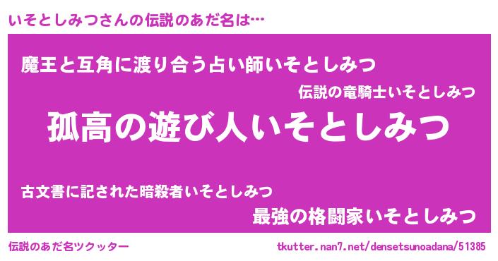| 胡散臭い通販商品みたいなあだ名 | 『信頼と実績のペンダント…その名も「いそとしみつ」』 |