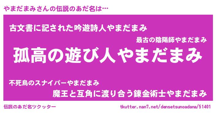 | 男性向けラノベタイトル風あだ名 | 『ダンジョンにやまだまみを求めるのは間違っているだろうか』 |