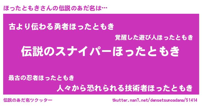 | ヒーロー風カッコイイあだ名 | 『スーパーホッタトモキ』『仮面ホッダー』 |