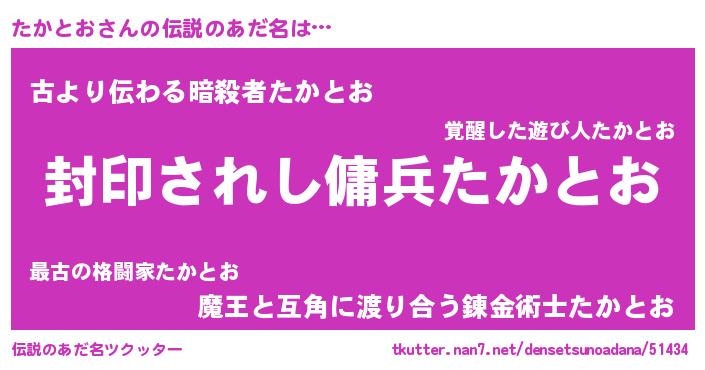 | 男性向けラノベタイトル風あだ名 | 『タカトオアートオンライン』 |