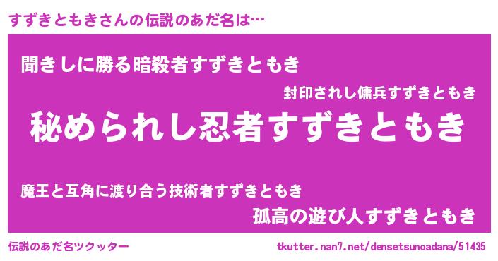 | 男性向けラノベタイトル風あだ名 | 『スズキトモキスレイヤー』 |