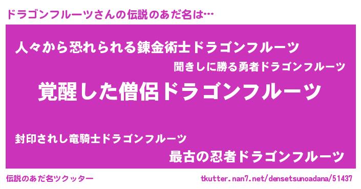 | 男性向けラノベタイトル風あだ名 | 『ドラゴンフルーツに滅ぼされるだけの簡単なお仕事です』 |