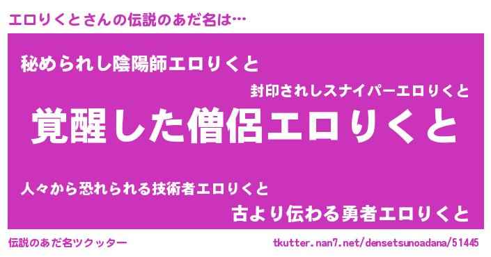 | 男性向けラノベタイトル風あだ名 | 『Re:エロりくとから始める異世界生活』 |