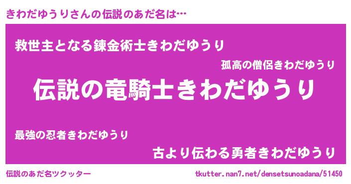 | ヒーロー風カッコイイあだ名 | 『スーパーキワダユウリ』『暗黒騎士キワ』 |
