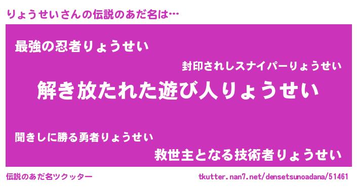 | 意味不明あだ名 | 『自称りょうせい』 |