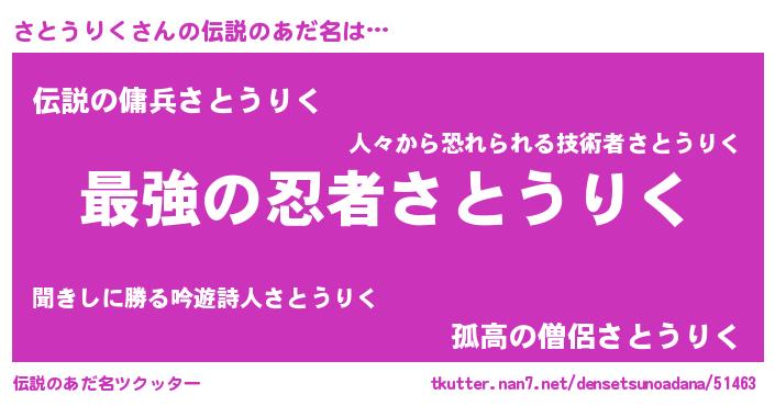 | 意味不明あだ名 | 『住所不定無職さとうりく(62歳)』 |