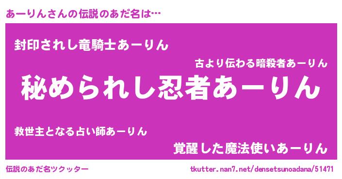 | 意味不明あだ名 | 『あーりんフォーエバー』 |