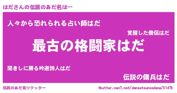 | 意味不明あだ名 | 『はだフォーエバー』『しいたけ科はだ属』 |