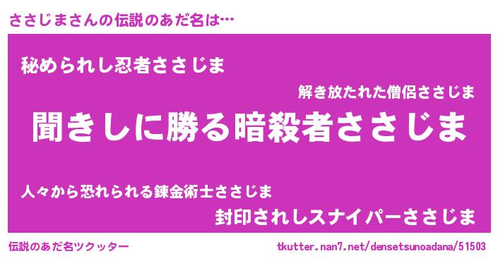 | 男性向けラノベタイトル風あだ名 | 『ささじまという概念が存在しない退屈な世界 』 |