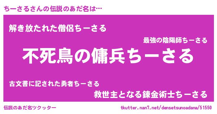 | ヒーロー風カッコイイあだ名 | 『スーパーチーサル』『幻影騎士チー』 |
