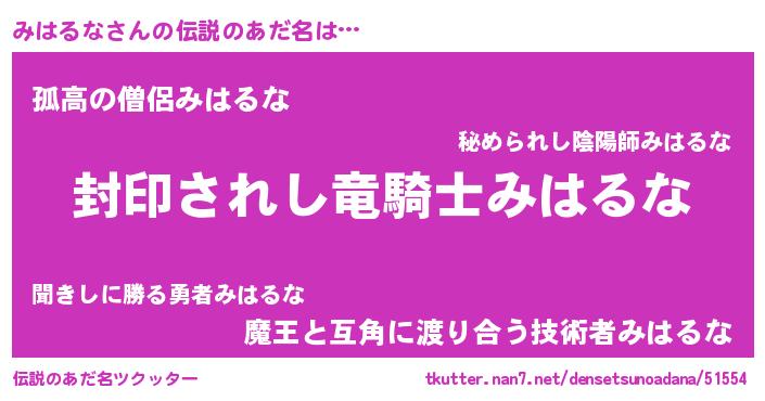 | 胡散臭い通販商品みたいなあだ名 | 『億万長者になれるブレスレット…その名も「みはるな」』 |
