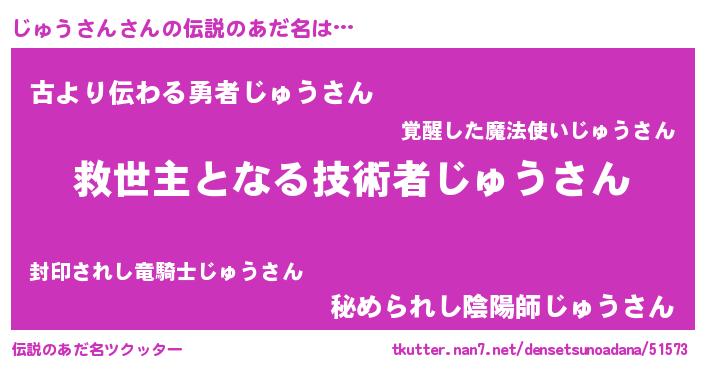 | ヒーロー風カッコイイあだ名 | 『慈愛の使者じゅうさん』『仮面ジュダー』 |