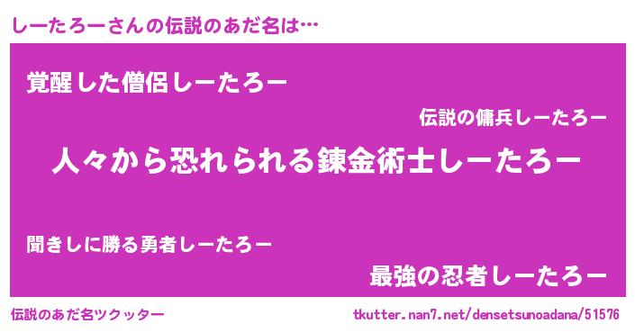 | 男性向けラノベタイトル風あだ名 | 『シータロースレイヤー』 |