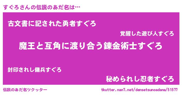 | ポケモン風あだ名 | 『スグゴンZ』『スックウザ』 |