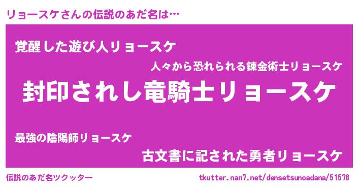 | 男性向けラノベタイトル風あだ名 | 『リョースケアートオンライン』 |