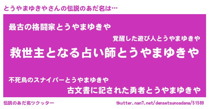 | 男性向けラノベタイトル風あだ名 | 『ノーゲーム・ノートウヤマユキヤ』 |