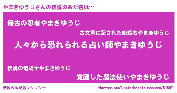 | 意味不明あだ名 | 『住所不定無職やまきゆうじ(43歳)』 |