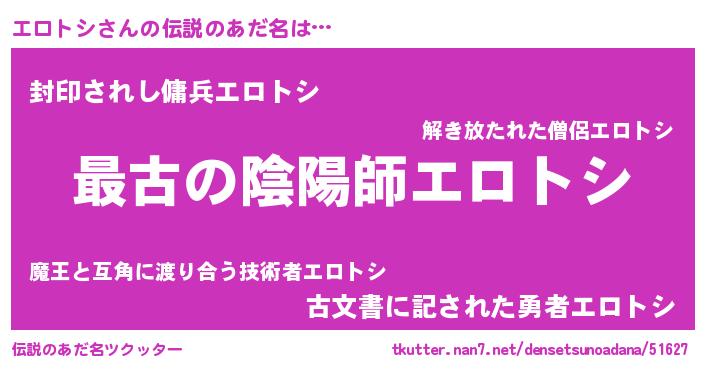 | ヒーロー風カッコイイあだ名 | 『ウルトラエロトシマン』『仮面エロダー』 |