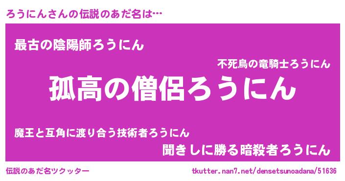 | ポケモン風あだ名 | 『ロウゴンZ』『ヒロウニン』 |