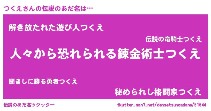 | ポケモン風あだ名 | 『ツックウザ』『ヒツクエ』 |
