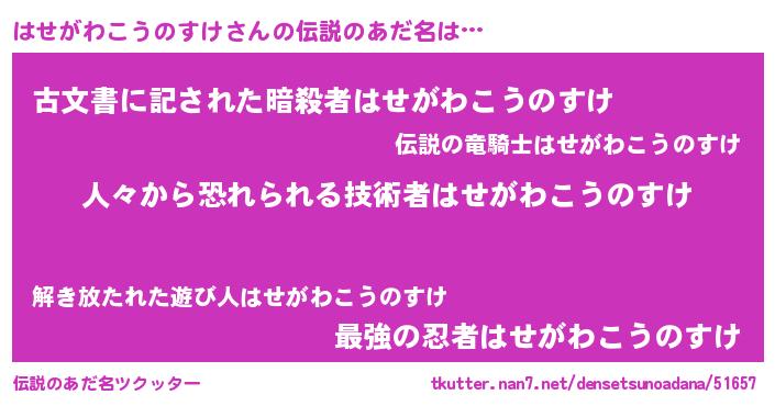 | ヒーロー風カッコイイあだ名 | 『仮面ハセダー』 |