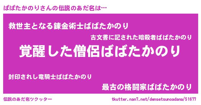 | 女子向けラノベタイトル風あだ名 | 『ばばたかのり様がみてる』 |