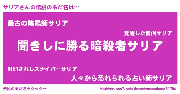 | 男性向けラノベタイトル風あだ名 | 『魔法科高校のサリア』 |