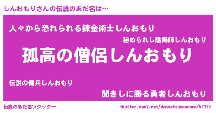 | 男性向けラノベタイトル風あだ名 | 『シンオモリスレイヤー』 |