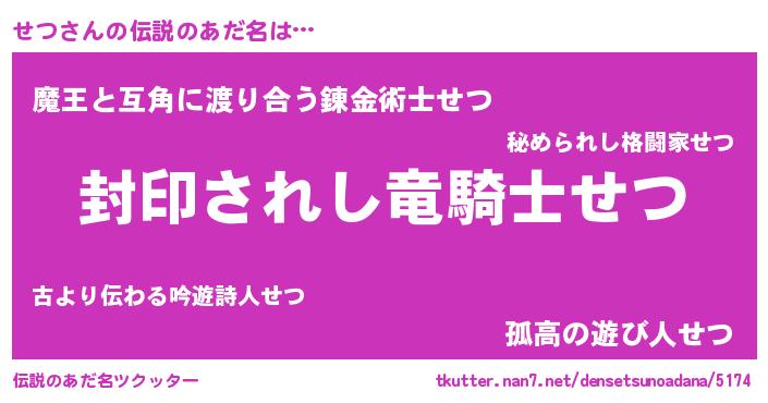 | 胡散臭い通販商品みたいなあだ名 | 『あなたにだけ特別に提供する100年もののヴィンテージワイン…その名も「せつ」』 |