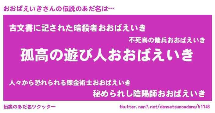 | 意味不明あだ名 | 『住所不定無職おおばえいき(79歳)』 |