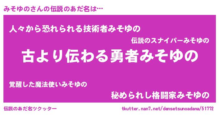 | 意味不明あだ名 | 『自称みそゆの』『永久保存みそゆの』 |