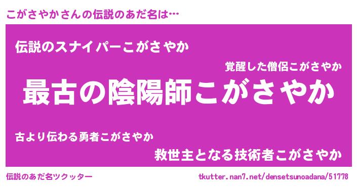 | 意味不明あだ名 | 『こがさやかフォーエバー』 |