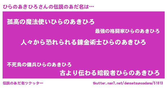 | 意味不明あだ名 | 『眠気覚ましガムひらのあきひろ味』 |