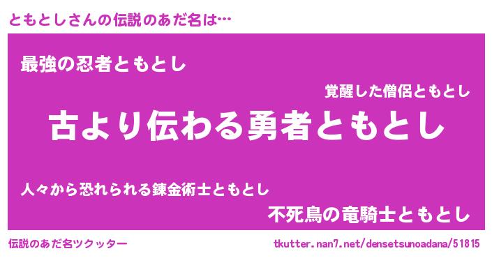 | 胡散臭い通販商品みたいなあだ名 | 『来世でも幸せになれる水素水…その名も「ともとし」』 |