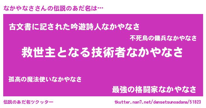 | ヒーロー風カッコイイあだ名 | 『慈愛の使者なかやなさ』『仮面ナカダー』 |