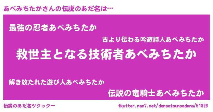 | ヒーロー風カッコイイあだ名 | 『天空の使者あべみちたか』 |