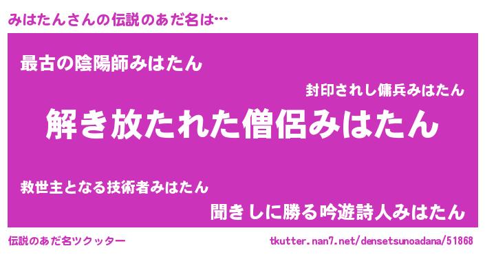 | 意味不明あだ名 | 『とにかく怪しいみはたん』 |