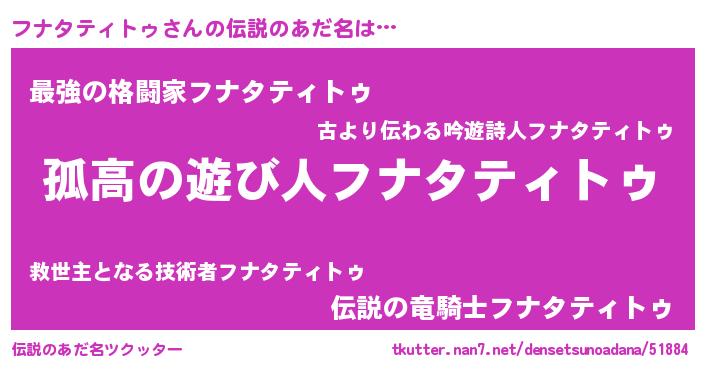 | 意味不明あだ名 | 『とにかく怪しいフナタティトゥ』 |