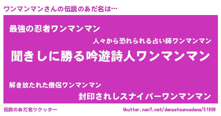| 男性向けラノベタイトル風あだ名 | 『ワンマンマンスレイヤー』 |