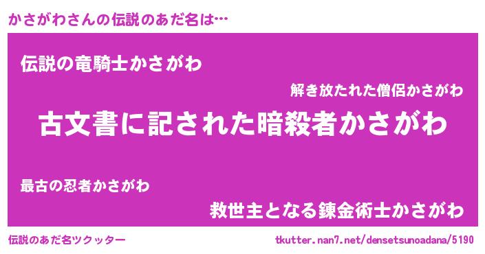 | ヒーロー風カッコイイあだ名 | 『仮面カサダー』『ネオカサガワ』 |